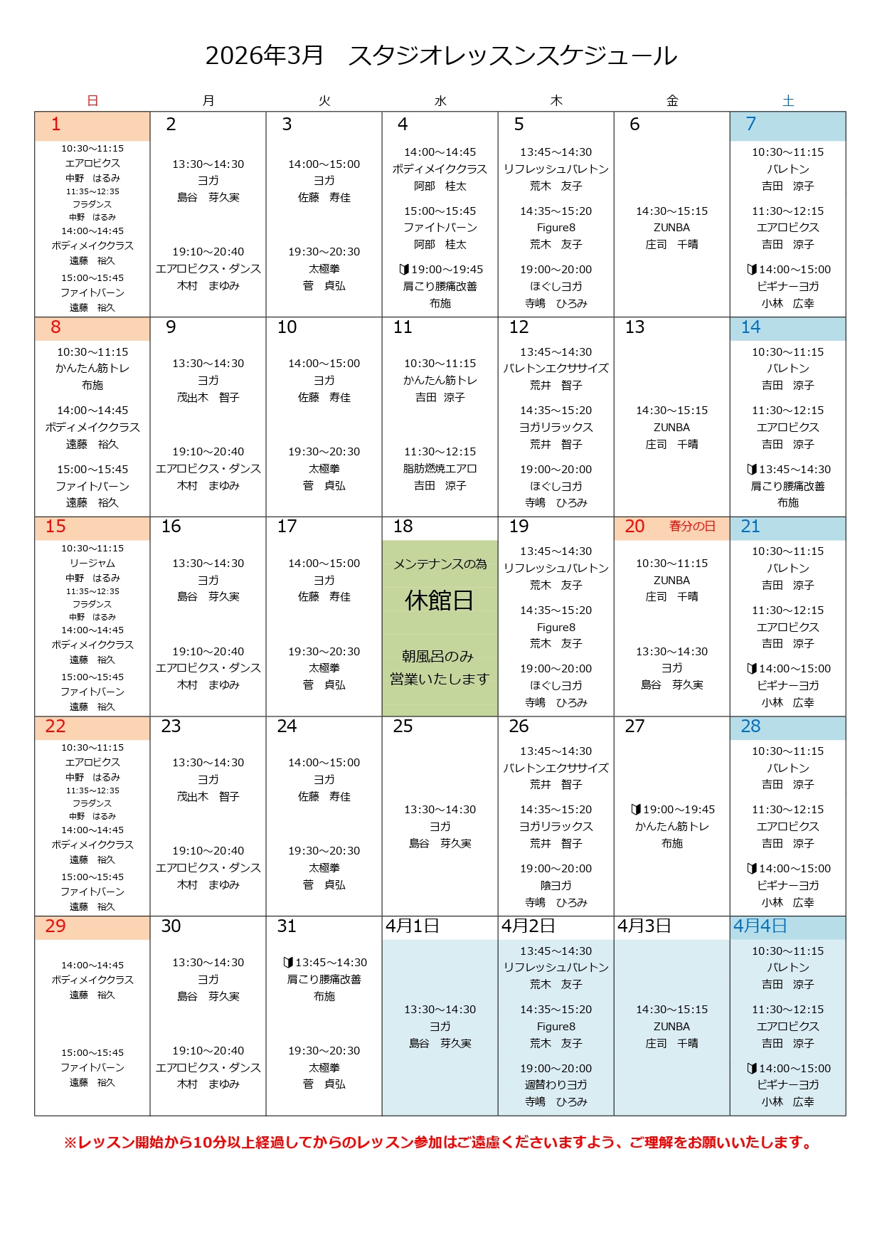 リカッセでは、どなたでも気軽に参加できる各種レッスンを日替わりで開催しています。