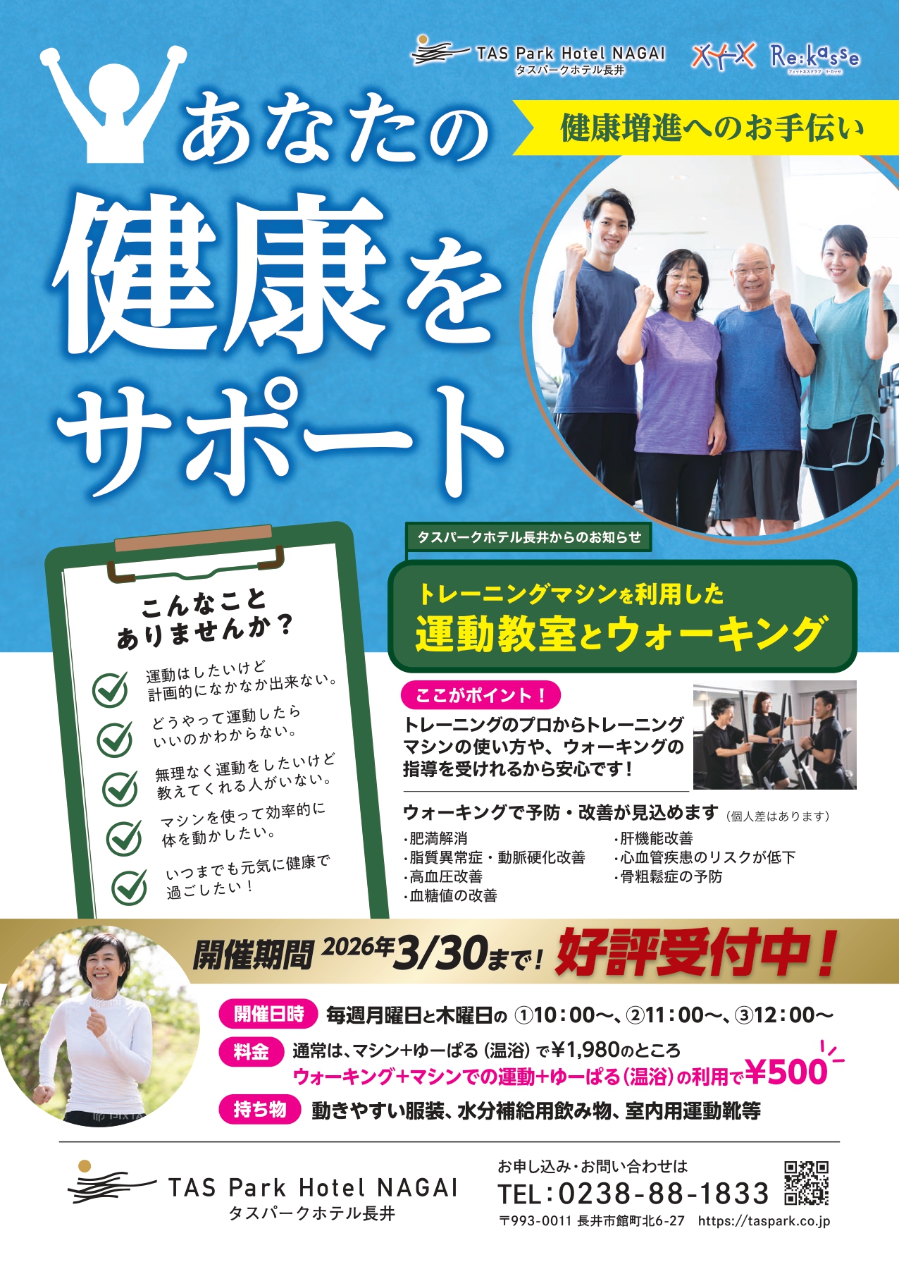 料 金/ウォーキング+マシンでの運動+ゆーぱる(温浴)の利用で500円