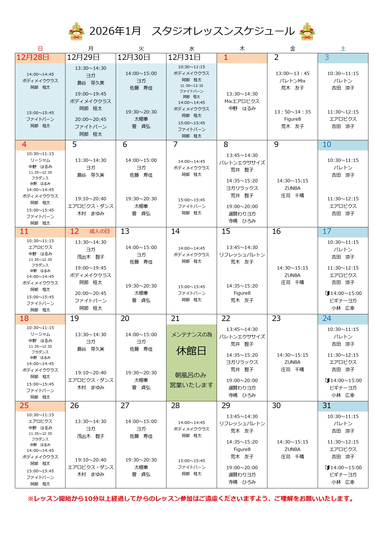 【リ・カッセ】1月レッスンスケジュール